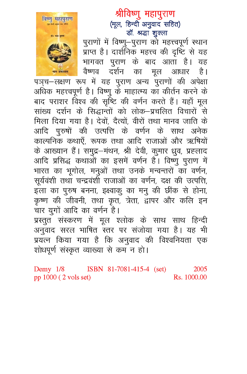 SHREE VISHNUMAHAPURAN (TEXT WITH HINDI TRANSLATION)